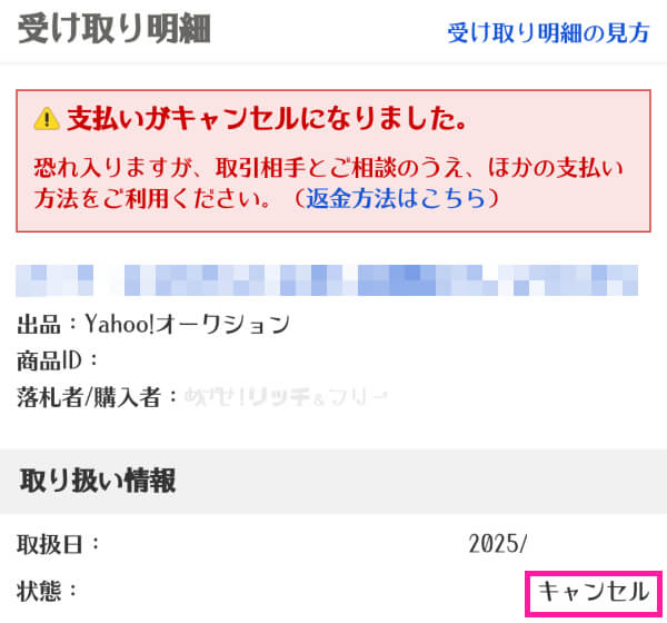 これで取引は中止され、落札者にはyahoo!から返金されます。