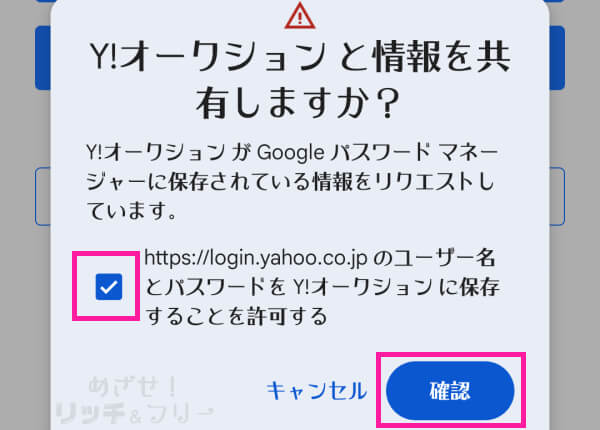 切り替えたいID分をタップすると確認メッセージが表示されるので、「許可する」にチェック→「確認」をタップします。