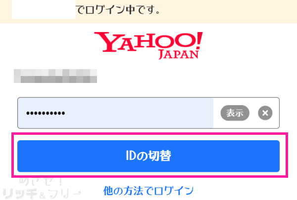 「ID/携帯電話番号/メールアドレス」の何れかと「パスワード」を入力して「IDの切替」をクリックします。